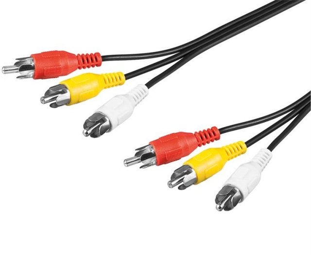 Kabel pro spojení dvou audio zařízení zvukovým signálem stereo kvality. Na obou stranách jsou 3 konektory RCA (cinch). Kabel je v černé barvě. Konektory: 3 x RCA cinch male <-> 3 x RCA cinch male Délka: 2 m