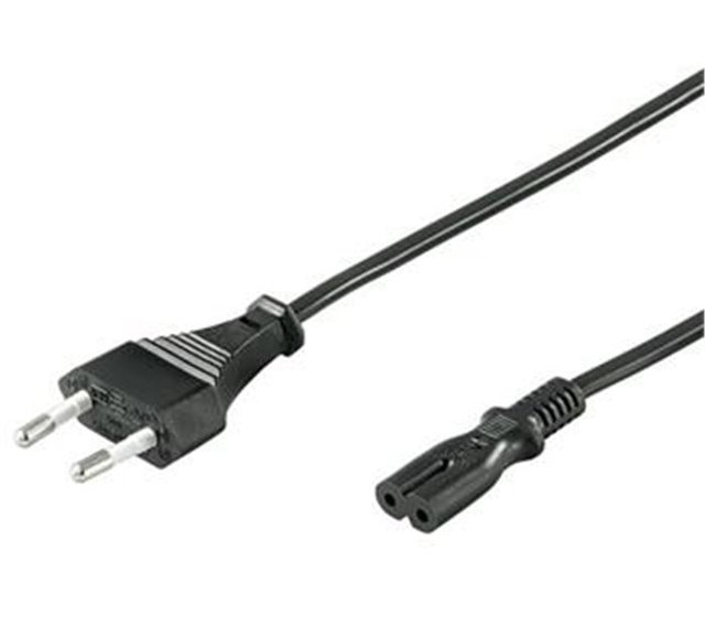 Napájecí kabel v černém provedení pro napájecí adaptér. Dvoužilový kabel je zakončený koncem v podobě ležaté osmičky. * Napětí max.: 250V * Proudové zatížení: max 2,5A * Vodič kabelu: H03VVH2F 2x0.75mm2 měď * Barevné provedení:Černé * Počet kusů v kartonu: 50 ks * Délka kabelu: 5m