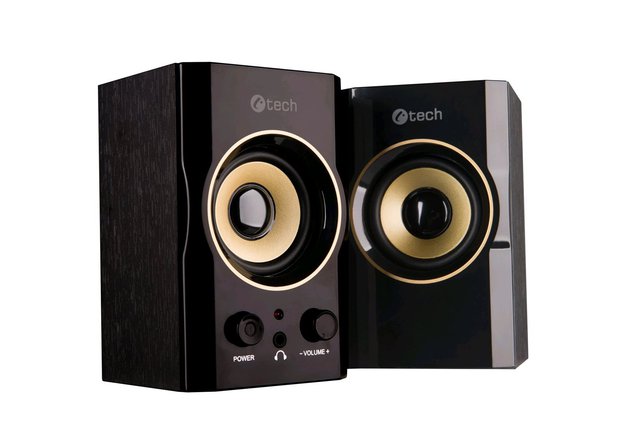Martom.cz > Multimédia, audio > Reproduktory drátové > repro C-TECH SPK-11, 2.0, dřevěné, černo-zlaté, USB