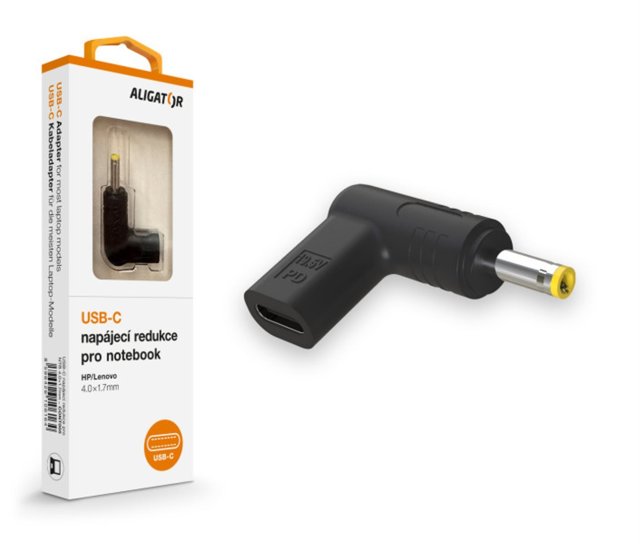 Martom.cz > Notebooky a ultrabooky > Napájecí adaptéry - UNIVERZÁLNÍ > Aligator USB-C napájecí redukce 4,0 x 1,7 mm pro notebooky HP/Lenovo