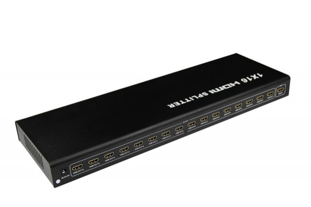 HDMI Video Splitter 1 => 16 s externím napájecím zdrojem, HDMI 1.4a kompatibilní max. rozlišení 1080i a 1080p. Můžete připojit několik HDMI obrazovek k jednomu HDMI zdroji signálu. • kompatibilní s DTV 480i, 480p, 720i, 720p, 1080i and 1080p • podpora VGA, SVGA, XGA a UXGA • HDMI 1.4a • podporuje Full 3D • HDCP ready • indikace stavu LED diodami • napájecí adaptér na 230V v sadě • přenáší obraz i zvuk • podpora až 15m HDMI kabelu na vstupu a 25m HDMI kabelu na výstupu. (zesiluje HDMI signál) • kovové pouzdro pro lepší odvod tepla Pokud se obraz po zapojení rozbočovače nezobrazí ihned po zapojení, vyčkejte cca 30s než dojde k rozpoznání signálu. Rozměry: 460x 150x 40mm (š x h x v)
